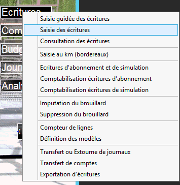 Nous allons voir, dans un premier temps, comment s'effectue la saisie d'une écriture sans se préoccuper d'éventuels aides ou automatismes. Puis, nous développeront progressivement toutes les aides disponibles. Pour lancer la saisie d'écritures :