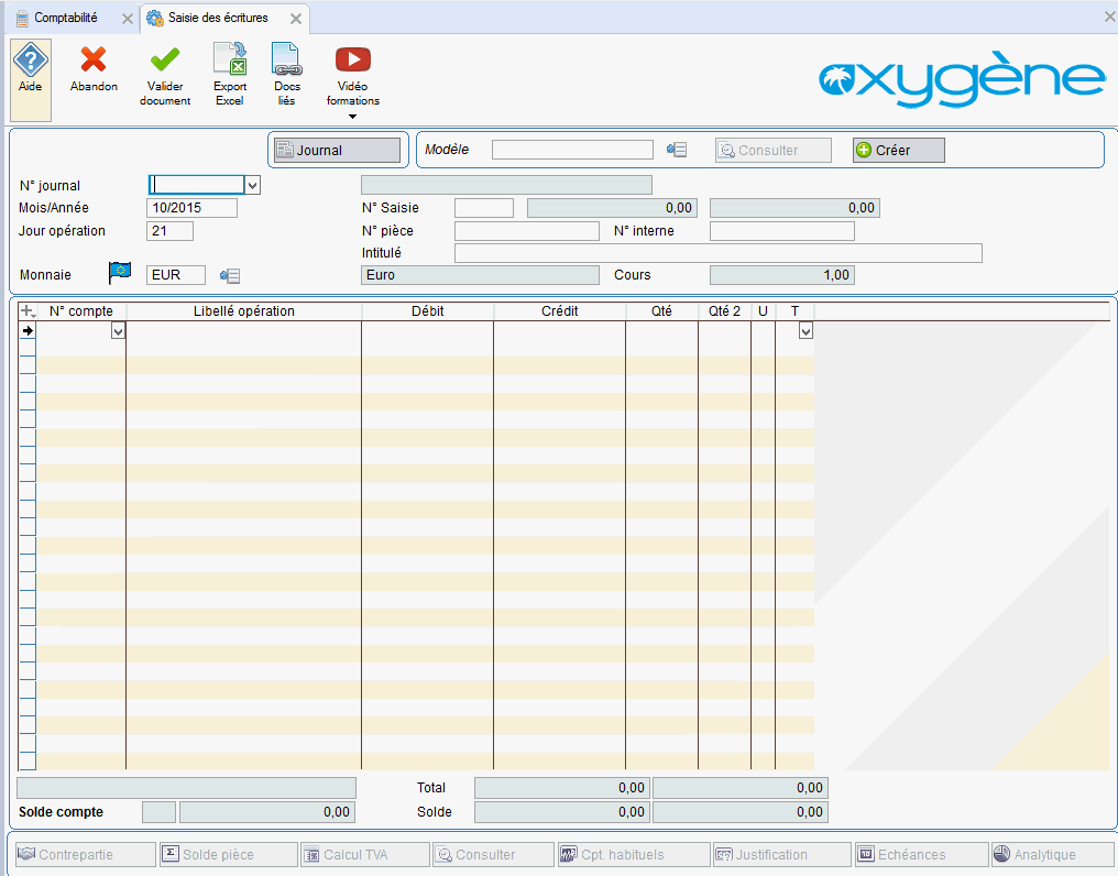Nous avons vu jusqu'ici comment saisir simplement une écriture comptable sans faire appel à d'autres fonctionnalités que la saisie d'informations dans les zones de saisie correspondantes. La Comptabilité Oxygène propose, en standard, de nombreux automatismes, aides et contrôles de saisie qui vont vous permettre d'accroître votre productivité de saisie.