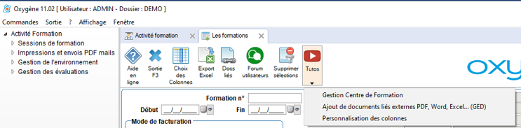 Vous avez d'autres vidéos avec des thèmes précis de l'application, par exemple dans la fenêtre des sessions de formation :
