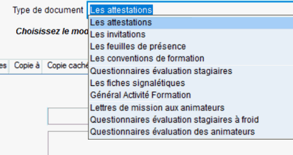 Si ce n'est pas le cas dans votre dossier, il vous faut les créer afin que chaque type de document de formation puisse faire l'objet d'envois de mails.
