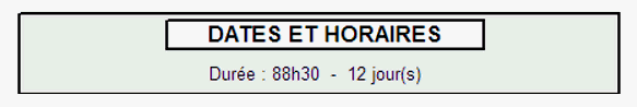 Impression de la durée de la formation en jours et en heures au-dessus de la liste des dates du stage.