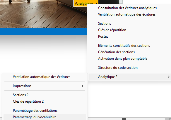 Cette fonction permet de paramétrer la terminologie donnée au code section 2. Ce vocabulaire est alors repris dans tous les écrans et états utilisant le code section 2.