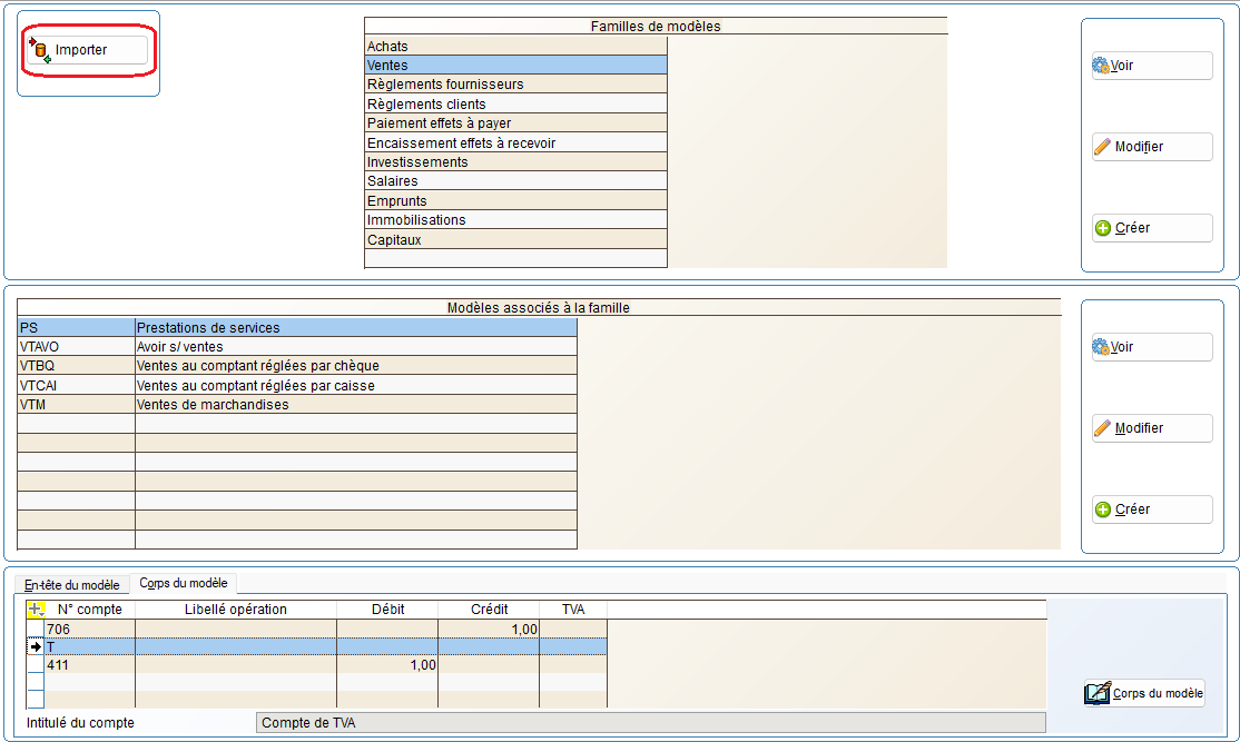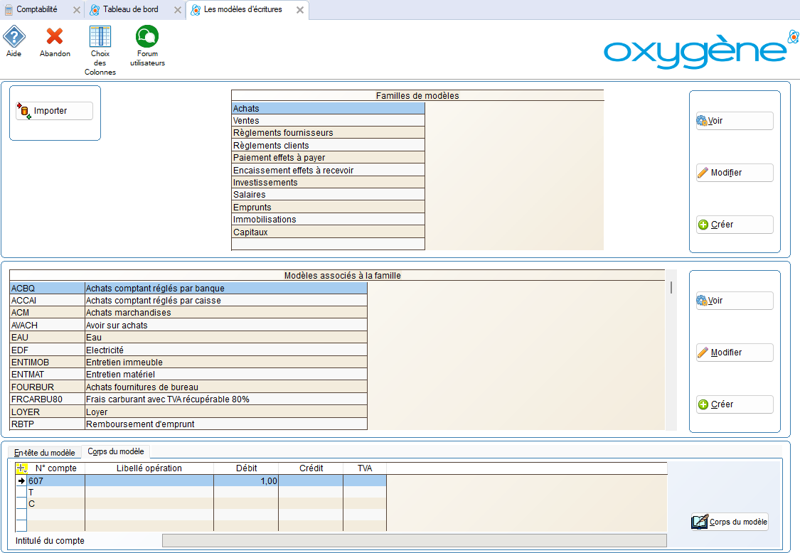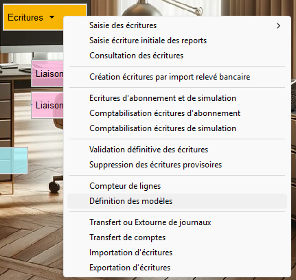 Pour accéder aux modèles de saisie d'écritures, choisissez :