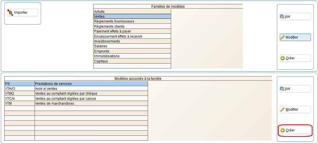 Afin de faciliter leur accès, les modèles de saisie sont regroupés par famille .