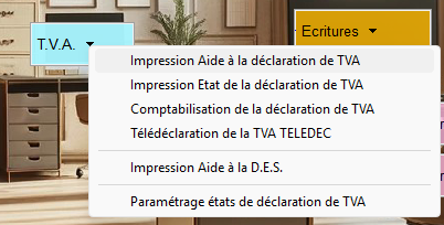 Vous pouvez éditer une aide à la déclaration de TVA et choisir entre :