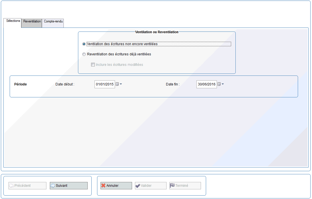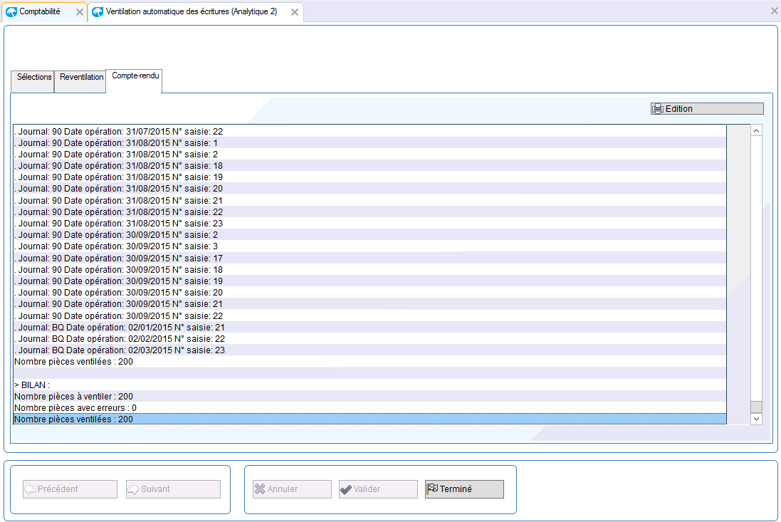 Pour chaque écriture, si une ligne supporte l’analytique, le logiciel calcule la ventilation analytique 2 à partir de la ventilation analytique 1 et du paramétrage associé.