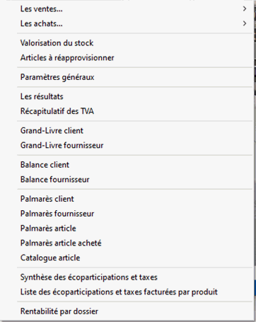L'accès aux impressions des statistiques des ventes dépend d'un droit utilisateur, ce qui permet d'autoriser ou pas le lancement de ces traitements selon les utilisateurs.